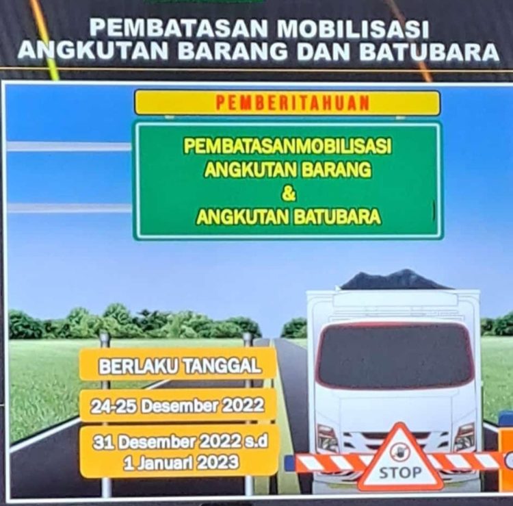 “Untuk pemberlakuan tidak ada mobilitas angkutan truk batubara maupun barang agar tidak mengganggu masyarakat yang akan melaksanakan ibadah akan diberlakukan pada tanggal 24-25 Desember dan 31 Desember 2022 – 1 Januari 2023,” ujarnya.