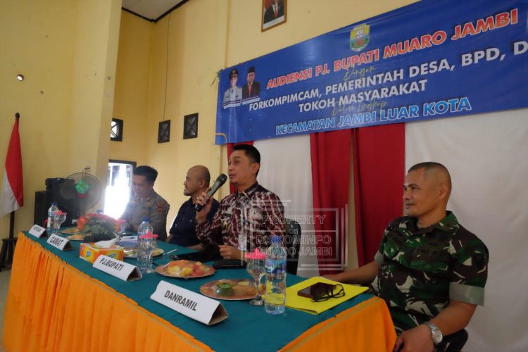 JEKA24.ID | MUAROJAMBI -Penjabat Bupati Muaro Jambi, Bachyuni Deliansyah, SH., MH., gelar Audiensi bersama Forkompimcam, Pemerintah Desa, BPD dan Tokoh Masyarakat jambi luar kota JALUKO diaula Kantor Camat Jaluko, jl. Lintas jambi-ma. bulian KM 22. No. 1 Pijoan. Jumat (10/3/2023).