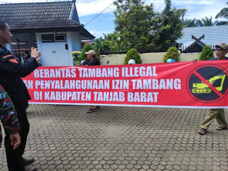 Kedatangan Masyarakat tersebut menuntut Dinas ESDM untuk menutup tambang yang ada di Kabupaten Tanjab Barat, yang mereka nilai merusak alam.