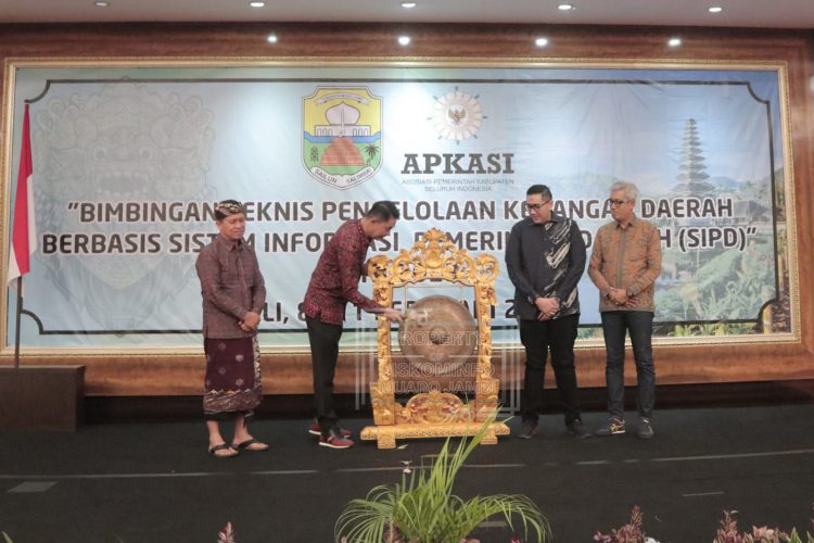 JEKA24.ID | MUAROJAMBI – Penjabat bupati Muarojambi Bachyuni Deliansyah,SH.MH membuka kegiatan bimbingan teknis(Bimtek) pengelolaan keuangan daerah berbasis sistem informasi pemerintahan daerah (SIPD) tahun anggaran 2023 yang Bertempat di Ballroom Hotel Paradiso Bali,Kamis (09/02/2023).
