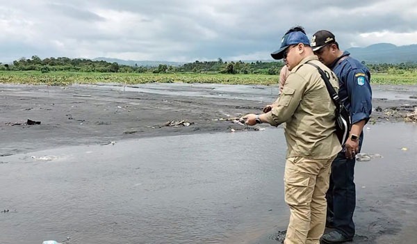Kepala Bidang Sumber Daya Air (SDA) Dinas PUPR Provinsi Jambi, Yazzer Arafat, sudah turun ke Desa Sungai Rumpun, melihat kondisi timbunan abu vulkanik yang sudah mulai mengeras.