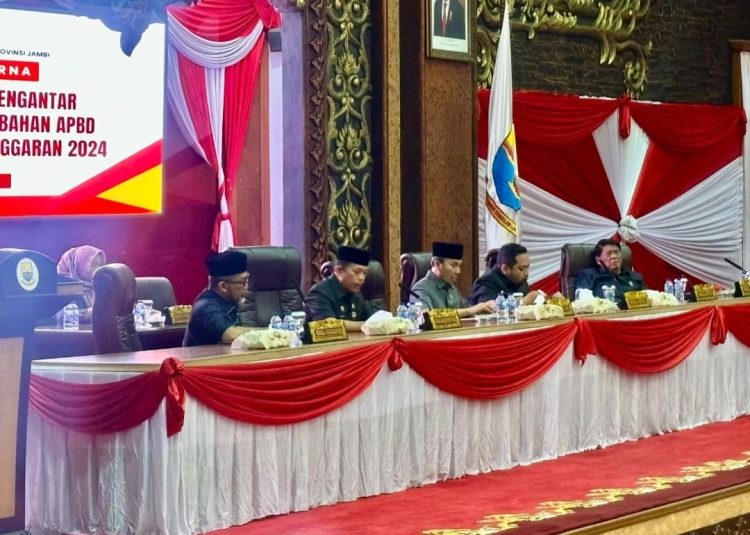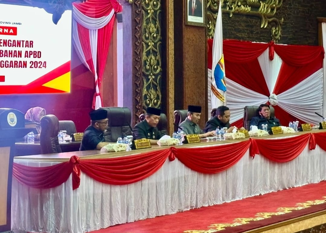 JEKA24.COM | JAMBI – DPRD Provinsi Jambi menggelar rapat paripurna dengan agenda penyampaian nota pengatar Rancangan Peraturan Daerah Perubahan APBD Provinsi Jambi Tahun Anggaran 2024, Sabtu malam (24/8). Rapat paripurna ini dipimpin oleh Ketua DPRD Provinsi Jambi, Edi Purwanto didampingi oleh Wakil Ketua DPRD Provinsi Jambi, Pinto Jayanegara, dan Burhanudin Mahir.