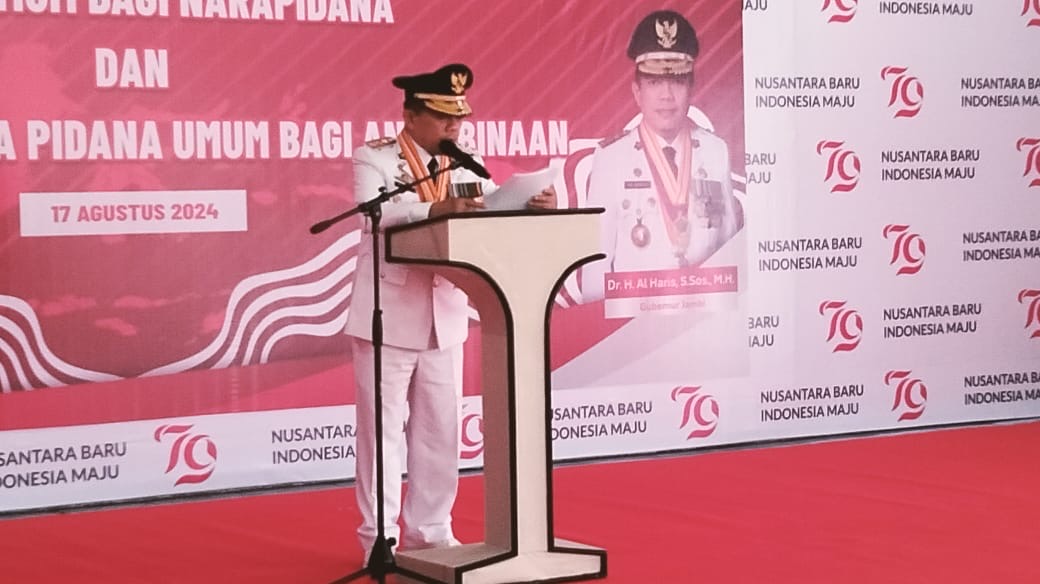 JEKA24.COM | Gubernur Jambi Dr. H. Al Haris, S.Sos, MH menegaskan bahwa remisi mangandung arti dan penegasan bahwa negara hadir memberikan perlindungan kepada setiap masyarakat warga negara dimana pun dia berada, hal demikian disampaikannya saat Pemberian Remisi Umum Hari Kemerdekaan ke-79 Republik Indonesia Tahun 2024, bertempat di Lapas Kelas IIA Jambi, Sabtu (17/08/2024) siang.
