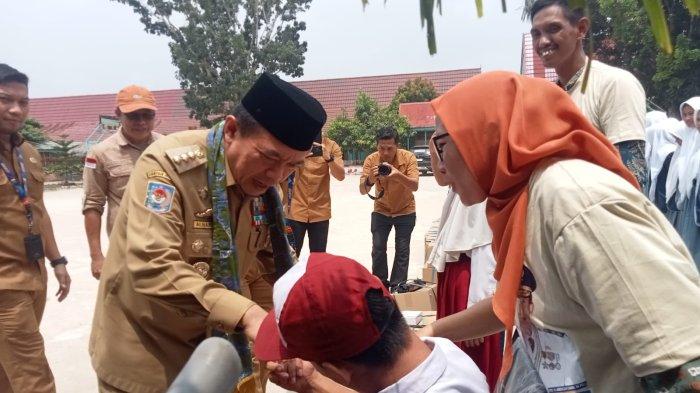 Bantuan Dumisake Pendidikan untuk siswa tidak mampu ini diserahkan Gubernur Jambi, Al Haris secara simbolis di SMA 7 Kabupaten Sarolangun, Senin (13/11/2023).