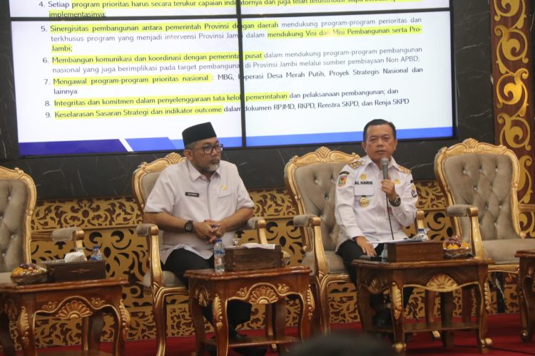 JEKA24.COM | JAMBI – Gubernur Jambi, Al Haris, menggelar rapat evaluasi bersama seluruh kepala OPD guna mengetahui sejauh mana capaian target yang telah ditetapkan. Rapat tersebut berlangsung di Ruang Pola Kantor Gubernur Jambi, Rabu, 6 Agustus 2025.