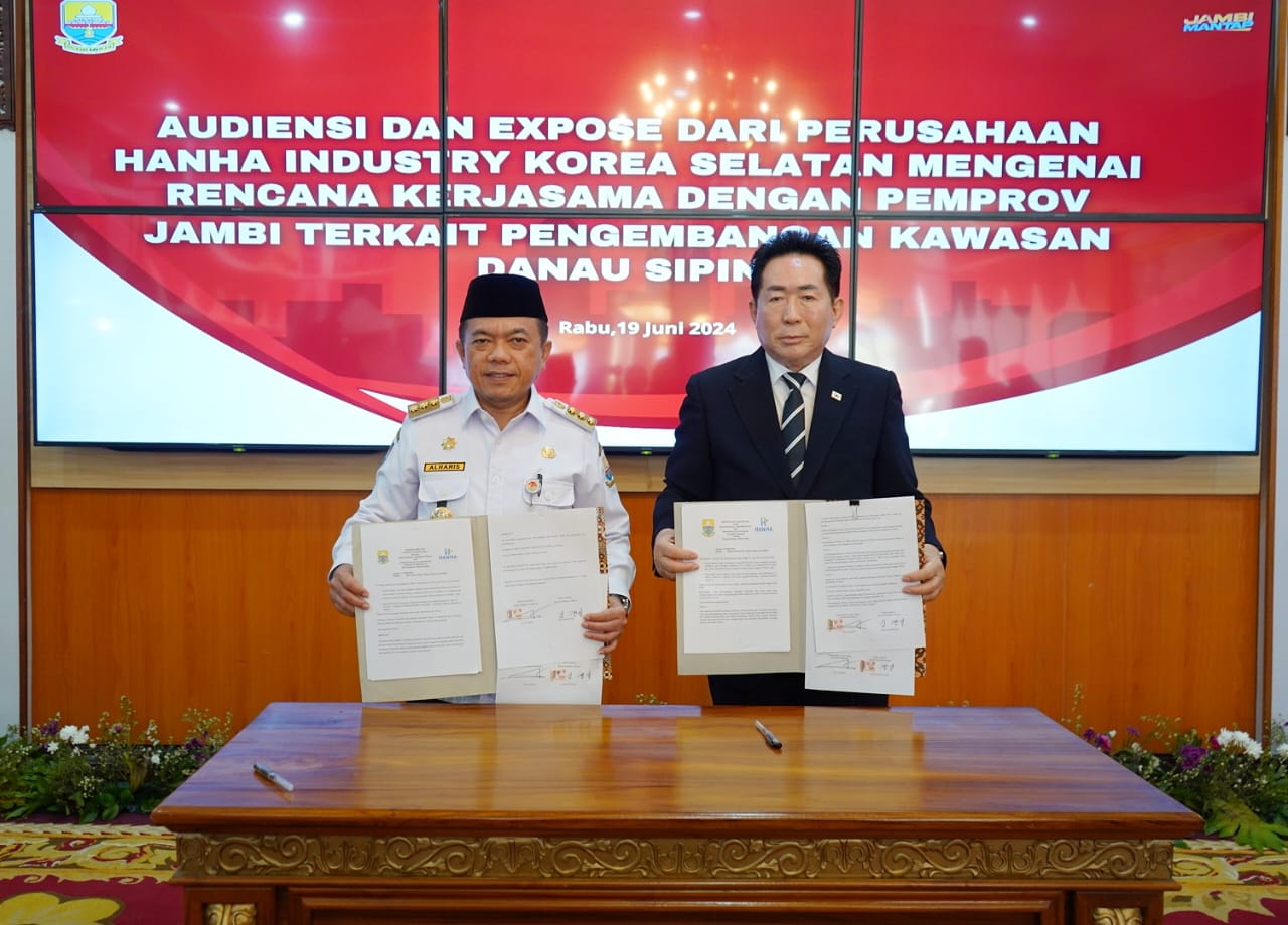Pada kesempatan ini juga dilakukan penandatanganan perjanjian kerjasama (MoU) antara Pemerintah Provinsi Jambi dengan pihak Perusahaan HANHA Industry Korea Selatan. Dari Pihak Pemprov Jambi langsung ditandatangani oleh Gubernur Al Haris dan dari pihak Korea Selatan ditandatangani oleh CEO Perusahaan HANHA Industry, Kim Jeong Sil.