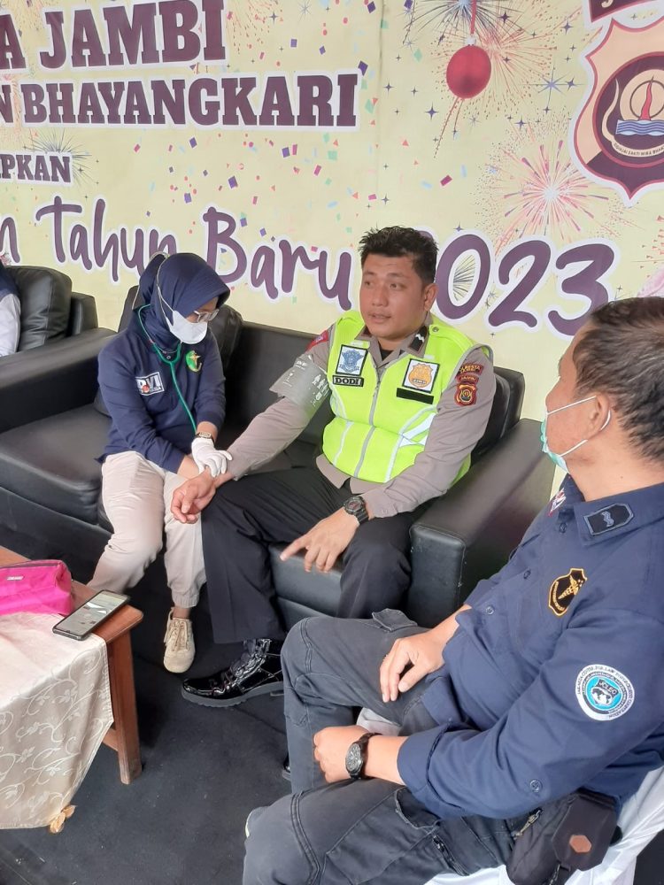 Kasatgas Humas Operasi Lilin 2022 Polda Jambi, Kombes Pol. Mulia Prianto mengatakan pengecekan ini Untuk memastikan kondisi kesehatan petugas gabungan yang bertugas di Pos Pam dan Pos Yan.
