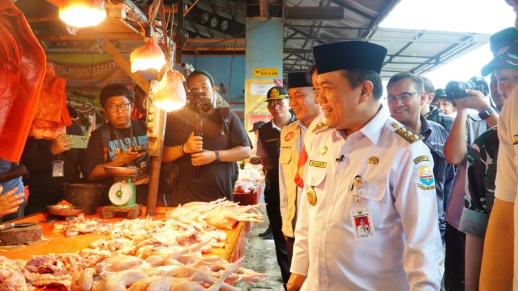 Gubernur Al Haris melakukan sidak bersama Tim Pengendalian Insplasi Daerah (TPID) Provinsi Jambi dan tim Satgas Pangan Provinsi Jambi untuk melihat ketersediaan dan harga kebutuhan bahan pokok di pasar Angso Duo Jambi.