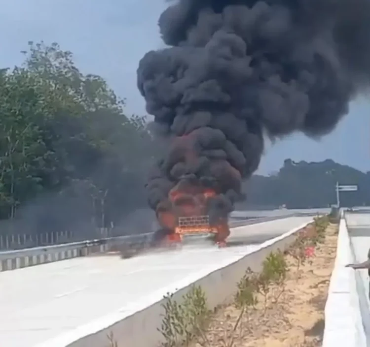 JEKA24.COM | JAMBI – Sebuah kecelakaan tragis terjadi pada Selasa, 12 November 2024, sekitar pukul 12.35 WIB di KM 15+600 ruas Tol Betung-Tempino-Jambi, jalur A (arah Jambi). Kecelakaan tersebut melibatkan satu unit mobil pick up Carry berwarna hitam yang terbakar di lokasi kejadian. Akibatnya, dua orang korban dilaporkan meninggal dunia di tempat, namun identitas nomor kendaraan belum diketahui karena kerusakan akibat kebakaran.