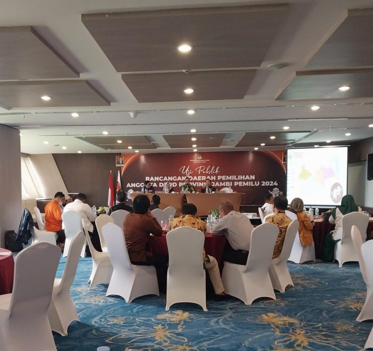 JEKA24.ID | JAMBI – Komisi Pemilihan Umum (KPU) Provinsi Jambi melaksanakan uji publik rancangan pemilihan daerah pilih (dapil) untuk pemilihan calon legislatif DPRD Provinsi Jambi 2024 , pada Sabtu (21/01) pagi, di Hotel BW Luxury Jambi.