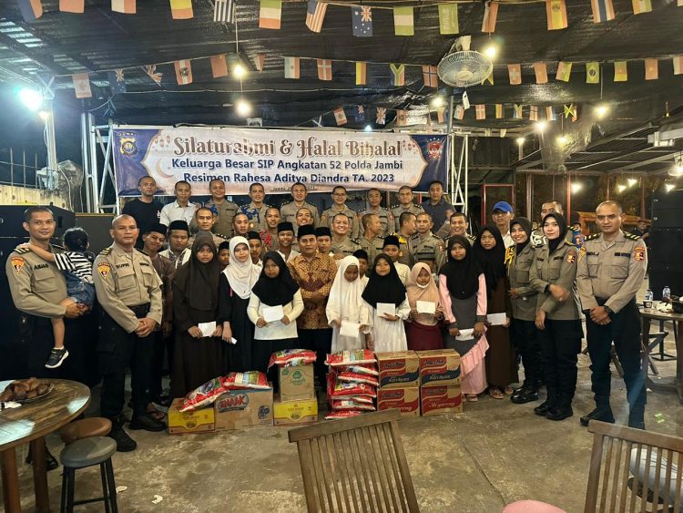 Bukan hanya itu, silahturahmi dan halal bihalal yang dilakukan siswa SIP angkatan 52 RAD Polda Jambi juga menggalar bakti sosial dan pemberian santunan bagi anak yatim piatu yang digelar di Caffe Mini Route 88, Kota Jambi, Jum’at (28/4/2023).