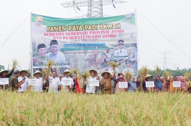 JEKA24.COM | MUAROJAMBI – Penjabat Bupati Muaro Jambi, Drs. Raden Najmi, secara langsung terjun ke sawah untuk memanen padi bersama petani di Desa Kedotan, Kecamatan Sekernan.