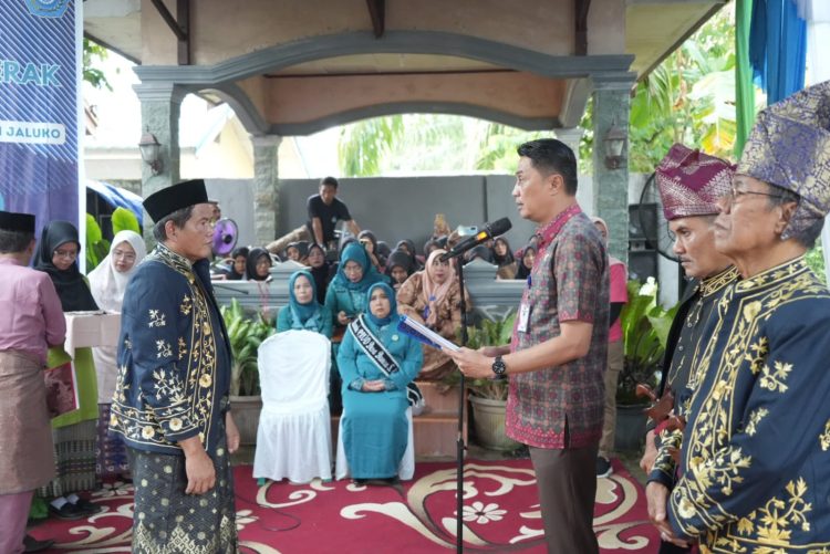 JEKA24.COM | MUAROJAMBI – Pj Bupati Muaro Jambi Bachyuni Deliansyah,SH.MH bersama ketua TP PKK kabupaten Muaro Jambi Faradillah zahara,SH Menghadiri Sekaligus Menyaksikan pengukuhan pengurus Lembaga Adat Melayu Jambi Desa Danau Sarang Elang, pelantikan Ketua TP-PKK Desa Danau Sarang Elang, dan Bunda Paud Desa Danau Sarang Elang, Kecamatan Jaluko, Kabupaten Muaro Jambi masa bakti 2023-2028 yang bertempat di Desa Danau Sarang Elang, Sabtu (20/01/2024).