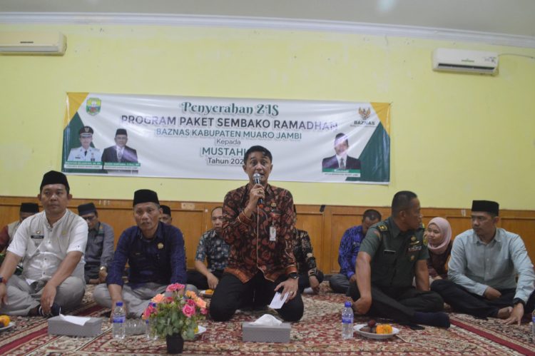 JEKA24.COM | MUAROJAMBI – Penjabat Bupati kabupaten Muaro Jambi Bahcyuni Deliansyah SH MH menghadiri langsung dalam Acara penyerahan program paket Sembako Ramadhan BAZNAS kabupaten Muaro Jambi,yang bertempat di kantor Camat maro sebo .Jumat 8/03/2024